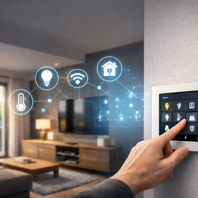 Neben der klassisch konventionellen Verkabelung realisieren wir auch moderne Lösungen im Bereich Gebäudeautomation und Smart Home mit KNX. So lassen sich Beleuchtung, Beschattung, Heizung, Klima und weitere Funktionen intelligent steuern – komfortabel, energieeffizient und zukunftssicher.